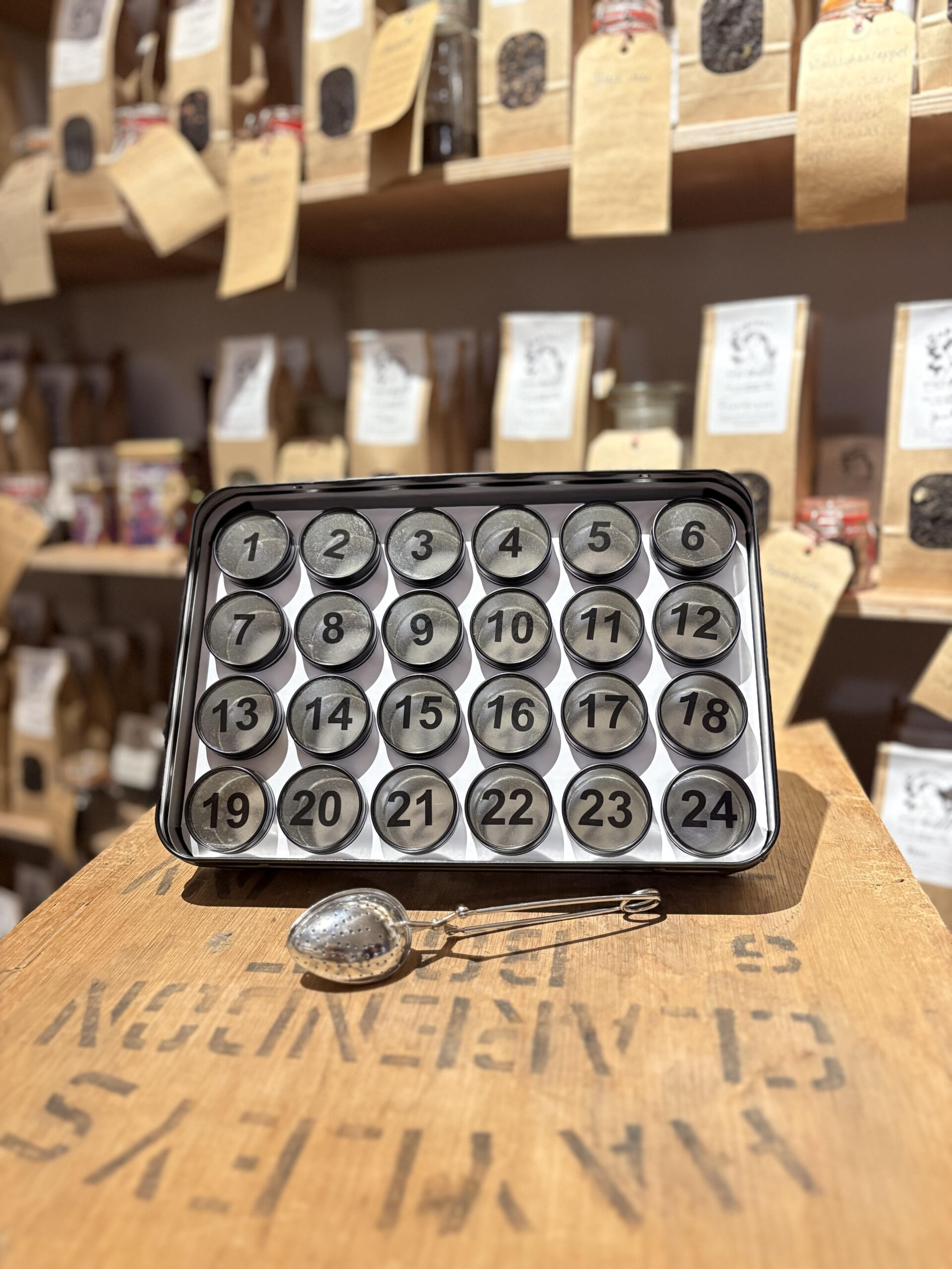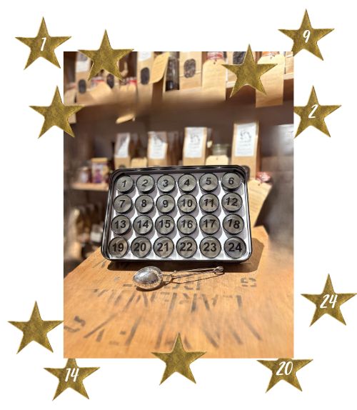 Uiteraard blijft de inhoud nog even geheim, maar weet dat wij de deze kalender met veel liefde en zorg samenstellen. Dit jaar hebben we gekozen voor een compleet nieuw design. Deze kalender is een blik met daarin 24 hele schattige mini blikjes die herbruikbaar zijn voor theeën, kruiden, hobby spullen, of om de kalender van volgend jaar weer te laten vullen. We zijn afgestapt van karton en theezakjes. In plaats daarvan wordt de adventskalender geleverd inclusief thee-ei lepel.